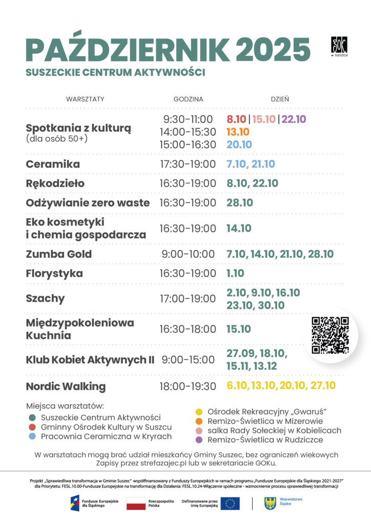 Kontakt: Gminny Ośrodek Kultury w Suszcu, ul. Ogrodowa 22, 43-267 Suszec, tel.: 32 212 44 91 wew. 23, e-mail: zajecia@kulturasuszec.pl.