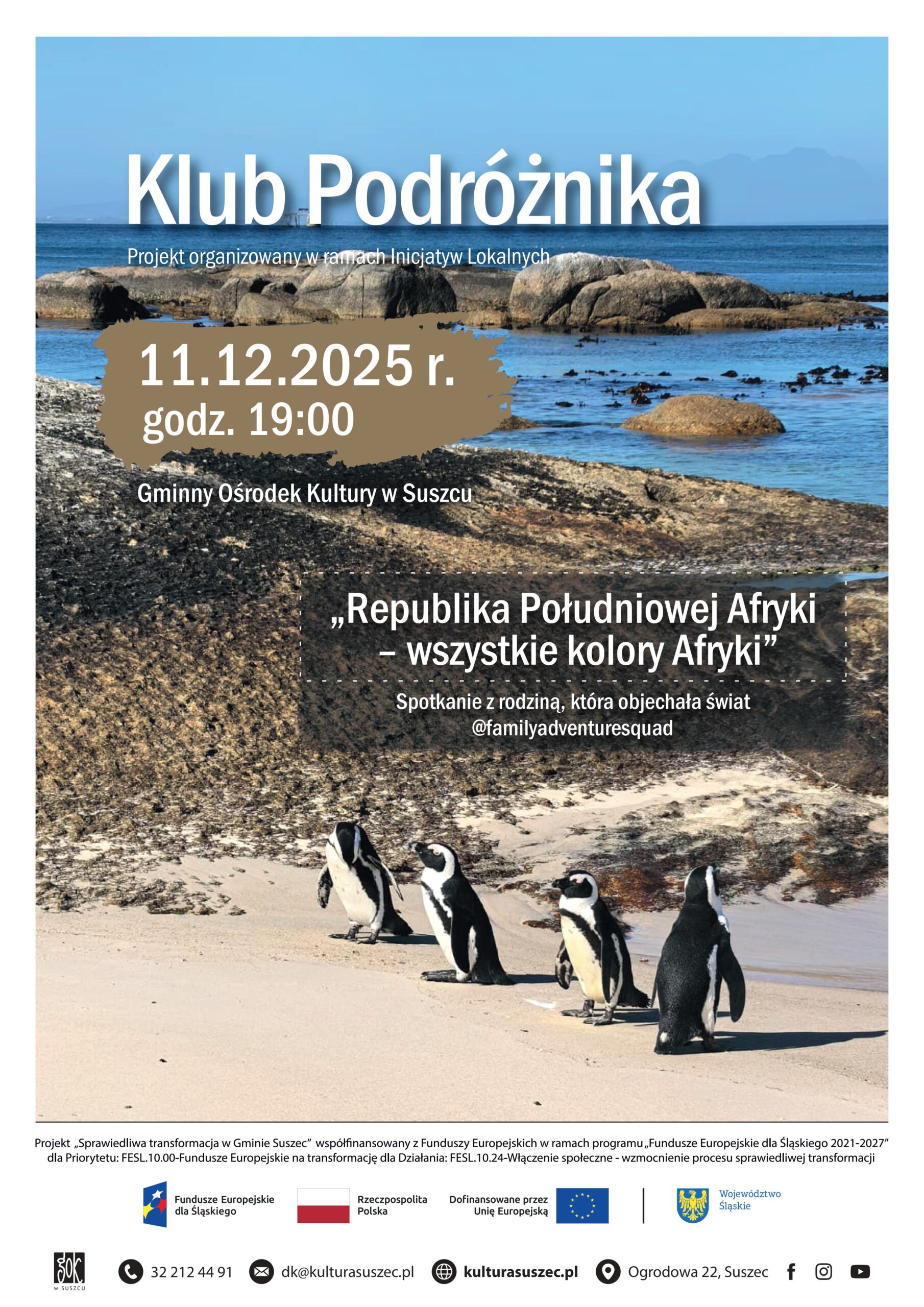 Na spotkanie zapraszamy 11 grudnia 2025 r., o godz. 19.00 do Gminnego Ośrodku Kultury w Suszcu. Obowiązuje wstęp wolny.