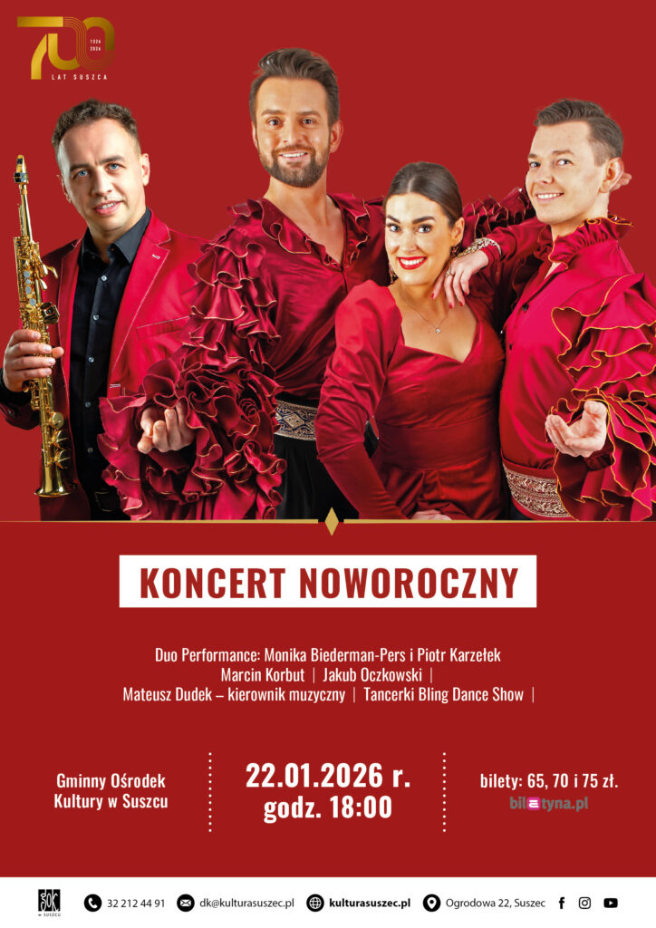 Na spotkanie zapraszamy 11 grudnia 2025 r., o godz. 19.00 do Gminnego Ośrodku Kultury w Suszcu. Obowiązuje wstęp wolny.