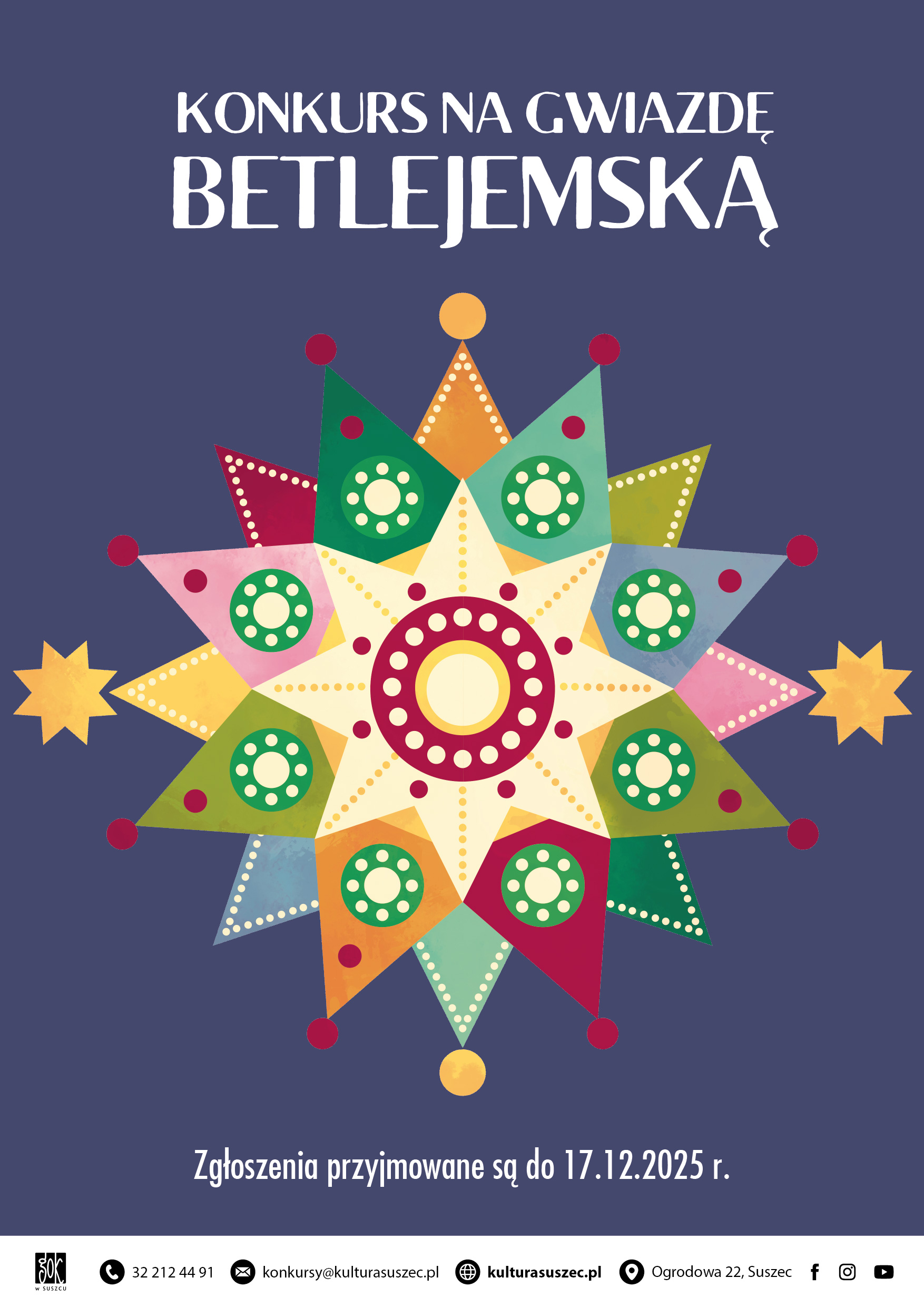Kontakt: Gminny Ośrodek Kultury w Suszcu, ul. Ogrodowa 22, 43-267 Suszec, tel.: 32 212 44 91 wew. 19, e-mail: konkursy@kulturasuszec.pl. Sekretariat GOK czynny od poniedziałku do czwartku w godz. 8:00-20:00 oraz w piątki w godz. 8:00-19:00.