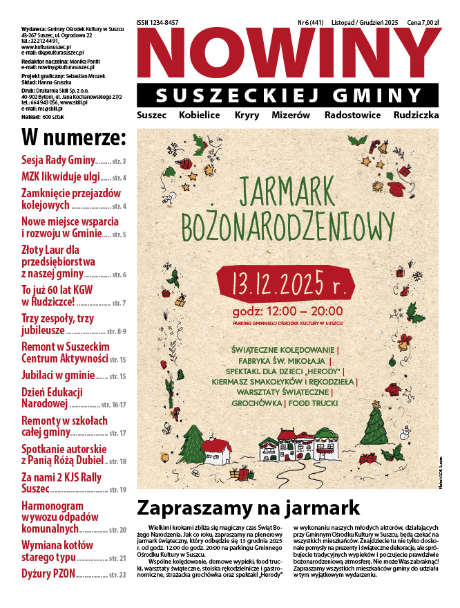 Kontakt w sprawie reklam: Weronika Smusz tel. 32 212 44 91 wew. 21, weronika@kulturasuszec.pl