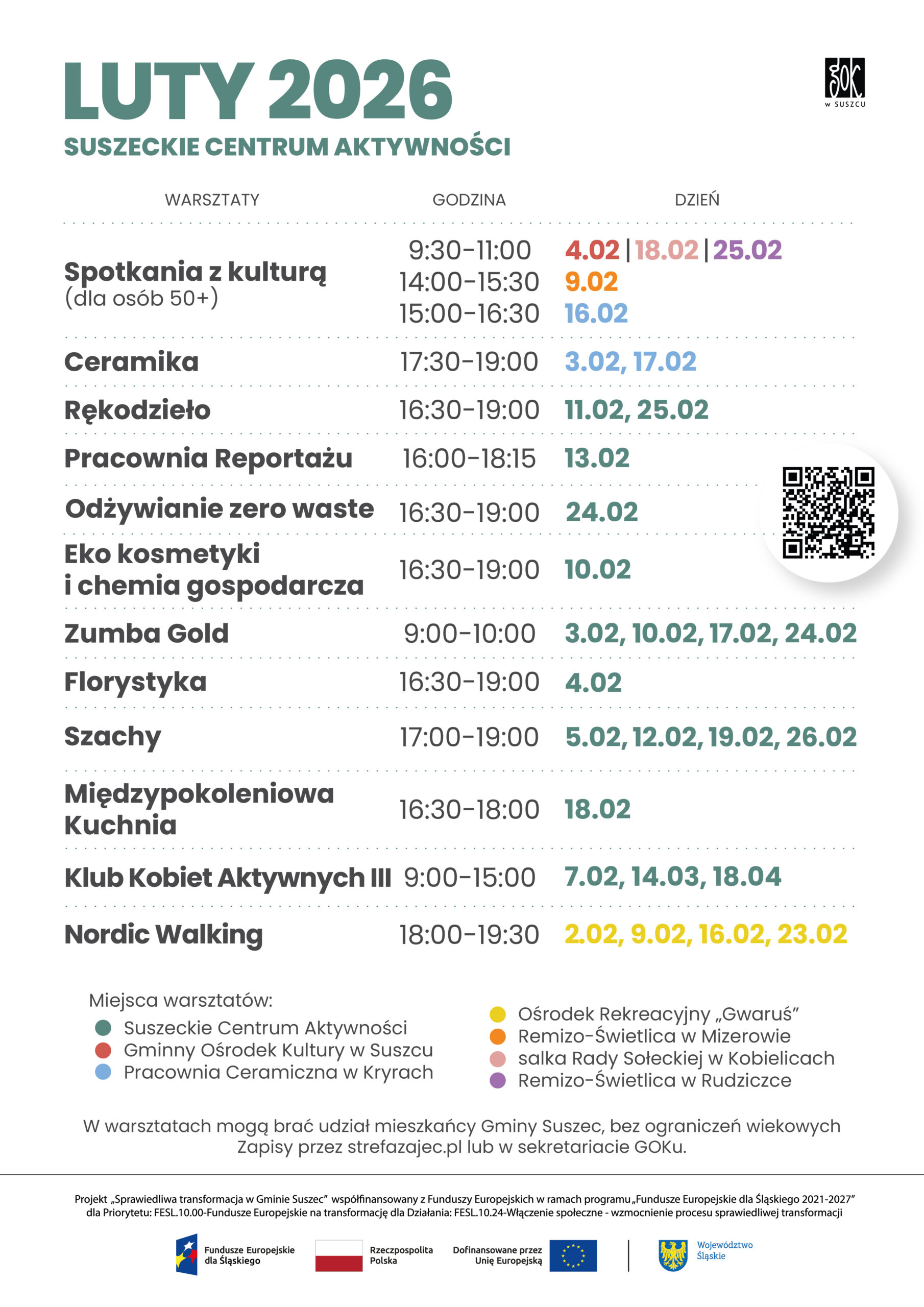 - zajęcia odbywają się w Suszeckim Centrum Aktywności (budynek Klubu Seniora, ul. Wyzwolenia 2, Suszec)