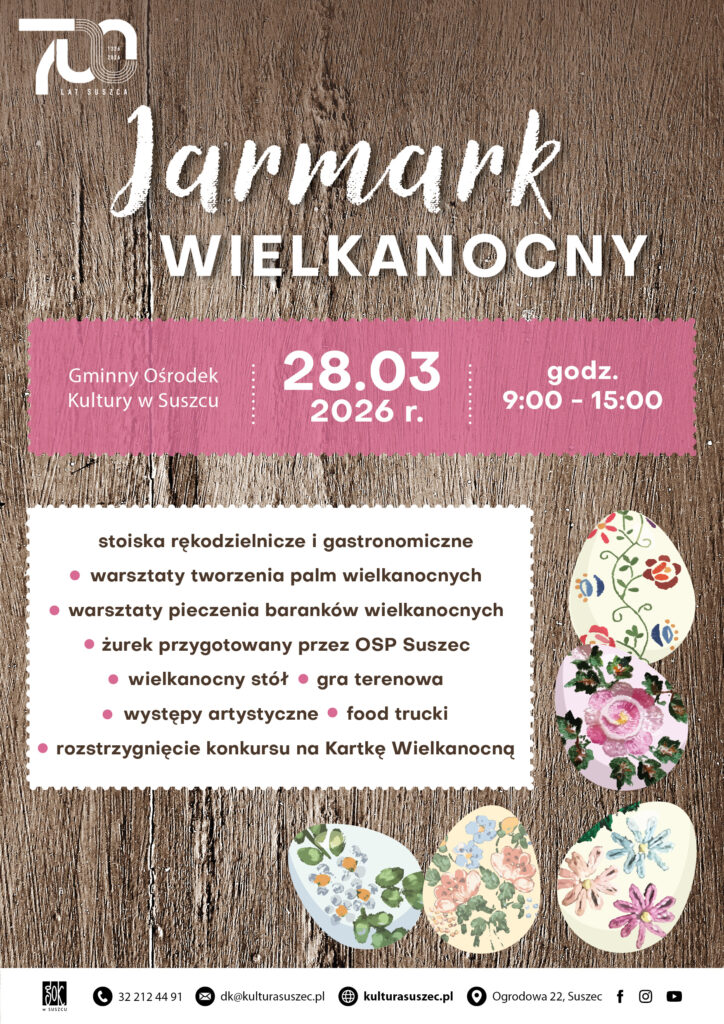 Kontakt: Gminny Ośrodek Kultury w Suszcu, ul. Ogrodowa 22, 43-267 Suszec, tel.: 32 212 44 91 wew. 23, e-mail: zajecia@kulturasuszec.pl.